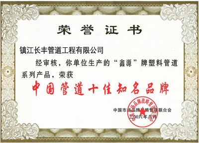 鎮(zhèn)江長(zhǎng)豐管道工程有限公司創(chuàng)建于2001年,公司有管材生產(chǎn)線4臺(tái)套,其中進(jìn)口生產(chǎn)線2臺(tái)套,管件生產(chǎn)設(shè)備2臺(tái)套,年生產(chǎn)能力近萬(wàn)噸,檢測(cè)設(shè)備齊全。